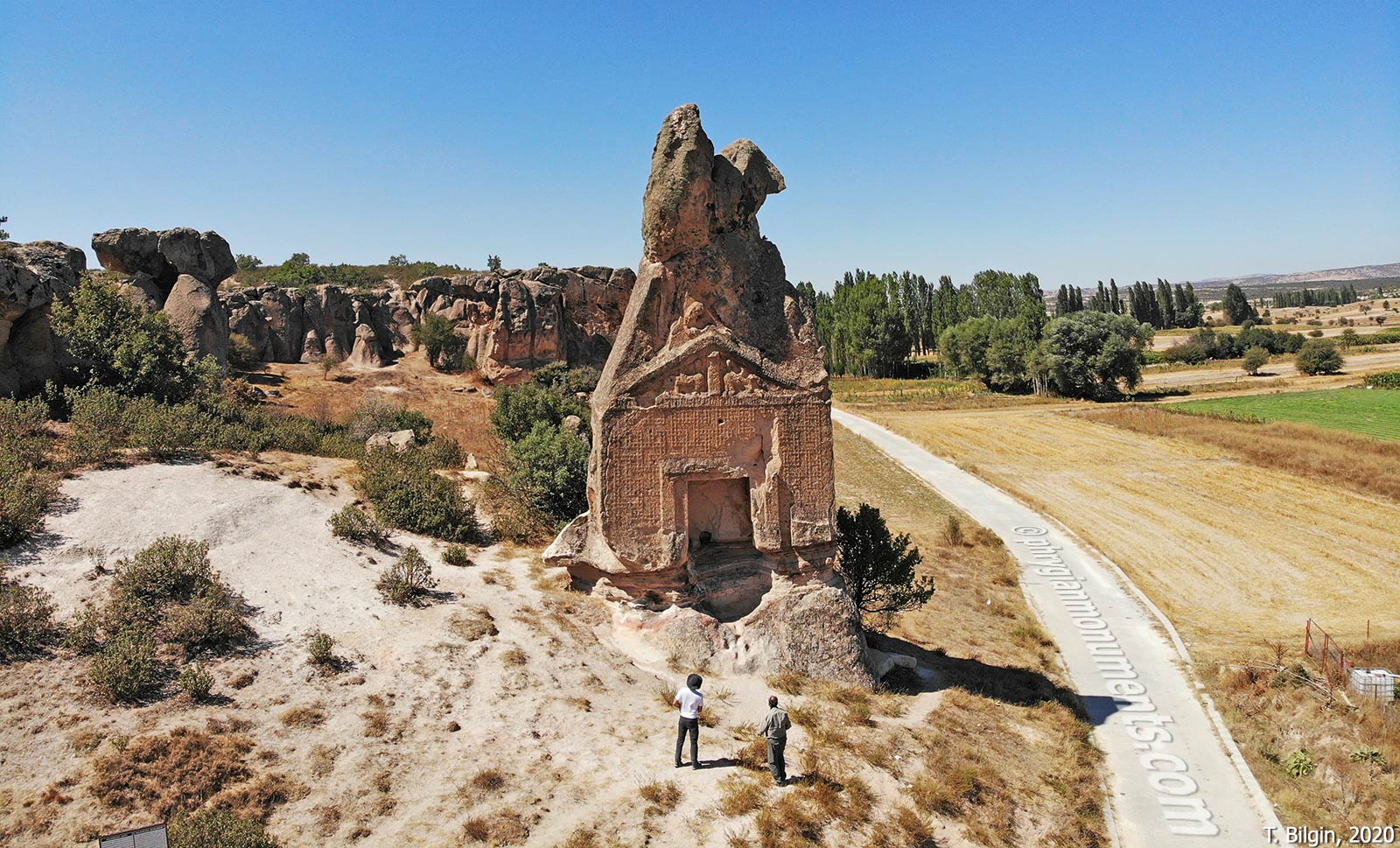 Aslankaya has a special place among the Phrygian rock façades with its unique door design and rich reliefs. Unfortunately, the destruction done by treasure hunters is much more than the erosion caused by the weather. The relief of the mother goddess, the right part of the niche frame, and part of the façade wall were damaged by blasting with dynamite.
